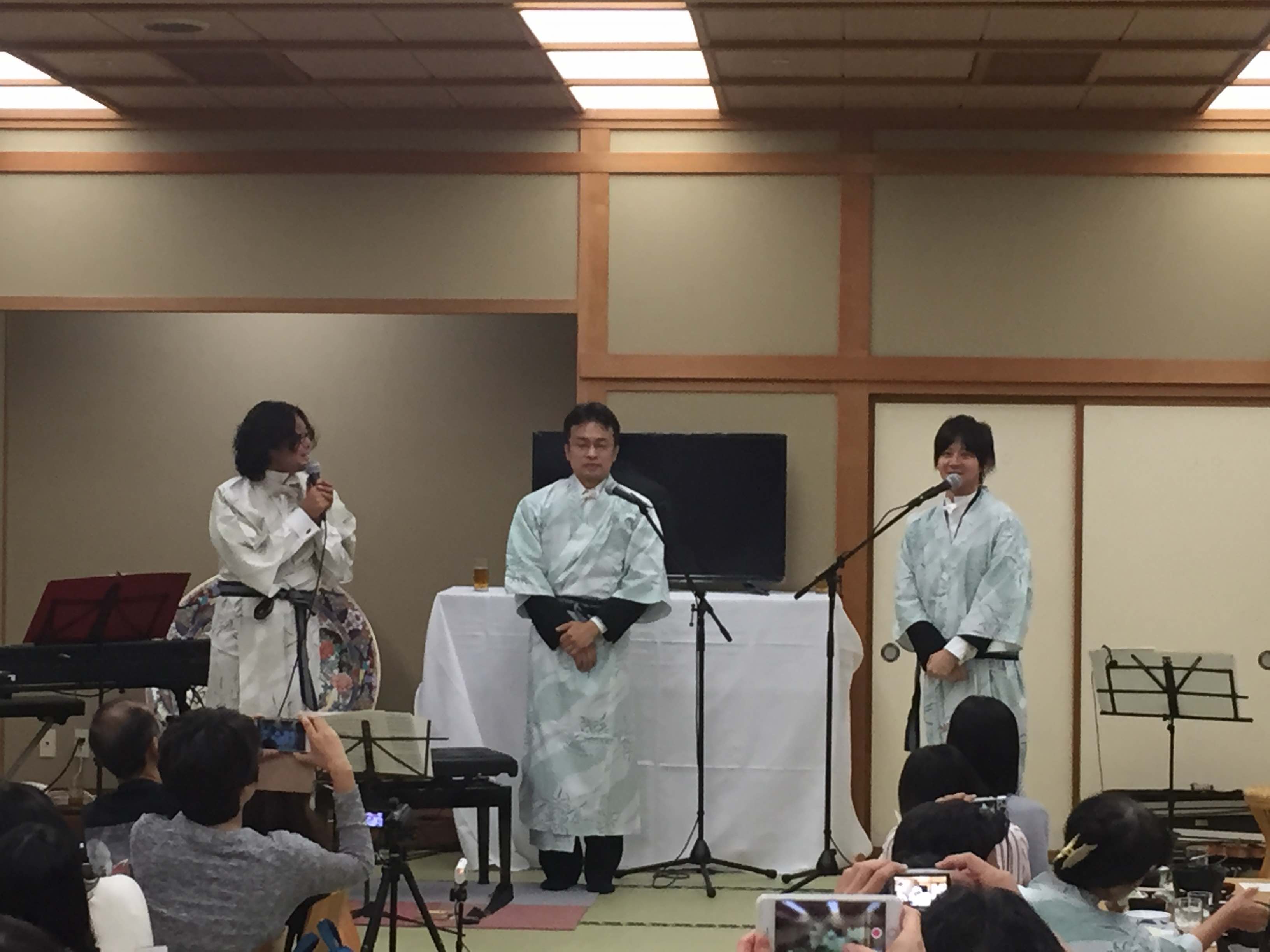まずは今回の宿泊施設、安曇野穂高ビューホテルのチャペルにてウェルカムコンサート。送迎バスが目の前で停車して、入り口で演奏をしながらお迎え、さらにこちらがチャペルの中にある古いエレクトーンを駆使してのレアなステージ。